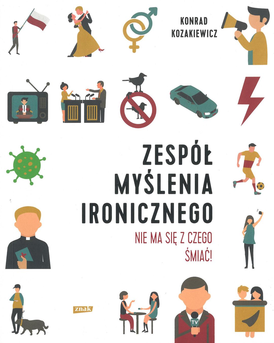 Bondziorno Łobuzerio! – wita się ze swoją milionową bandą łobuzów. Codziennie raczy ich porcją wybornych memów, a nie od dziś wiadomo, że dobry mem potrafi pobudzić do życia lepiej niż nerwowe pukanie do drzwi o szóstej rano, dwie kreski na teście ciążowym czy ksiądz Natanek grzmiący z ambony o Harrym Potterze. Niejednokrotnie oskarżany o promowanie nadużyć seksualnych, organizacji terrorystycznych i mowy nienawiści. Wybiera tematy, które śmieszą, złoszczą, irytują. I w nieoczywisty sposób komentuje otaczającą nas rzeczywistość. Gdzie podziewa się Minister Czarnek, kiedy nie spotyka się z nauczycielami? Co wspólnego ma krasnoludek z nieplanowaną ciążą piętnastolatki? Która wizja końca świata wydaje się najfajniejsza? Gdzie spotykają się jedzenie, seks i piłka nożna? Czy głupi ludzie na świecie są większością? Zespół Myślenia Ironicznego to zbiór bolączek, absurdów i niedorzeczności prosto z polskiego podwórka. Skomentowany przez „wujka Konrada”, który na internetowej ironii od jedenastu lat ściera zęby. I zilustrowany przez polskich twórców – wnikliwych obserwatorów naszej codzienności: Remka Dąbrowskiego, Bartosza Minkiewicza, Kamilę Szcześniak, Michalinę Tańską i Vontrompkę. To także odpowiedź na pytanie: Z CZEGO ŚMIEJĄ SIĘ POLACY? I CZY JEST SIĘ Z CZEGO ŚMIAĆ? Konrad Kozakiewicz – od 2010, czyli od samego początku, u sterów i żagli internetowych profili Zespołu Myślenia Ironicznego. Miłośnik zmarszczek mimicznych, dawnych czasów i pływania pod prąd. Bez kredytów, bez dzieci, bez zwierząt, bez pomysłu na życie. Ze wszystkich świętości czczący jedynie święty spokój