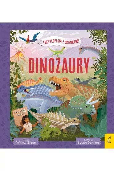 Seria „Encyklopedia z okienkami” to książki popularnonaukowe dla przyszłych odkrywców, podróżników i badaczy, idealne dla dzieci w wieku przedszkolnym z uwielbianym przez nie elementem – otwieranymi okienkami. Wyrusz w emocjonującą przygodę po wiedzę i nowe umiejętności! Pora na przygodę w towarzystwie dinozaurów! Wraz z doktorką Różą wyrusz w podróż do pradawnych krain, żeby spotkać niesamowite stworzenia, które w przeszłości rządziły Ziemią! Otwórz okienka, żeby dowiedzieć się masy interesujących faktów na temat tego, jak dinozaury żyły, co jadły – oraz wiele więcej. Czeka cię prehistoryczna przygoda, o jakiej ci się nie śniło! [opis wydawcy].