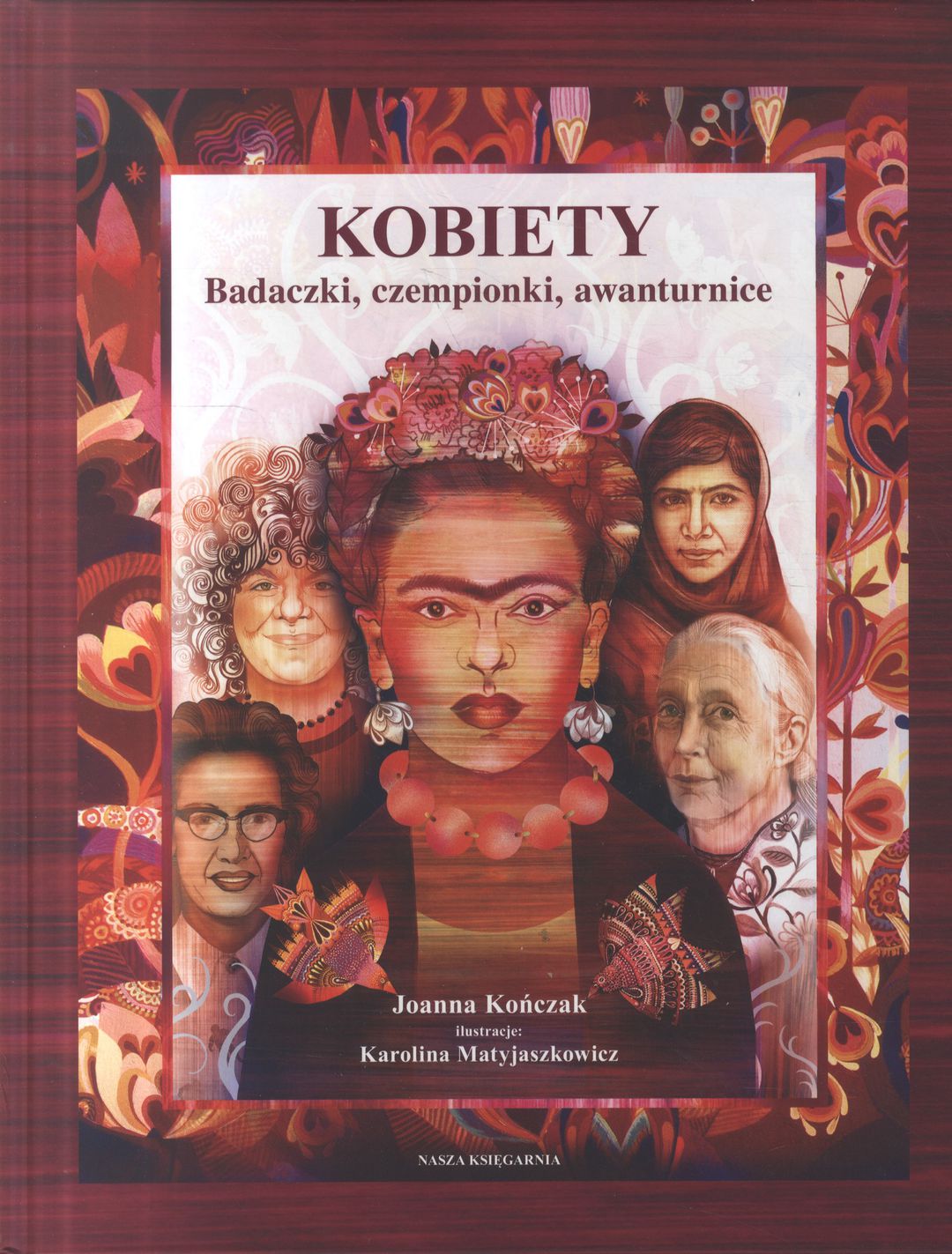 Kobiety : badaczki, czempionki, awanturnice / Joanna Kończak ; zilustrowała Karolina Matyjaszkowicz. - Wydanie pierwsze. - Warszawa : Wydawnictwo Nasza Księgarnia, 2018. - 142, [2] strony : ilustracje kolorowe ; 32 cm.