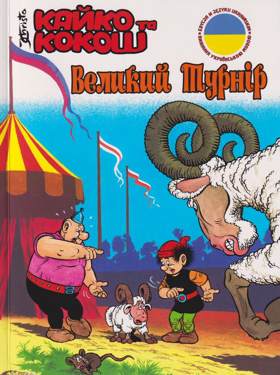 У 2003 році видавництво «Egmont Polska» перевидало серію, і завдяки цьому всі випуски комікса вперше були надруковані у кольорі. Версія «Великого турніру» українською мовою буде чималим сюрпризом для колекціонерів і шанувальників пригод Кайка і Кокоша та творчості Хрісти. Також вона дозволить україномовним читачам у всьому світі познайомитися з найпопулярнішими героями польских коміксів. Наближається великий турнір, і це завдає каштеляну Мірмілу дедалі сильнішого головного болю. Наче мало було йому того, що даремно оголосив суботи вихідними днями, бо дружина і так не дає виспатися, наче мало було того, що не може спокійно порибалити, бо городяни галасують і лякають рибу в рові, -- то ще й злицарі раз за разом вигадують нові способи захоплення Мірмілова. А тут це Свято Барана! Згідно з традицією, кожен каштелян має виставити на баранячих змаганнях власного спортсмена. А в Мірмілові немає жодного барана! Та, на щастя, є вірні воїтелі Кайко та Кокош, які вирушають у гори і, може, там знайдуть претендента, котрий добре буцається? Біда, однак, у тому, що ідея виставити свого барана спала на думку і злицарям. А Великий турнір от-от почнеться! [źródło opisu : https://aleplanszowki.pl * DOSTĘP: 7.04.2022r.]