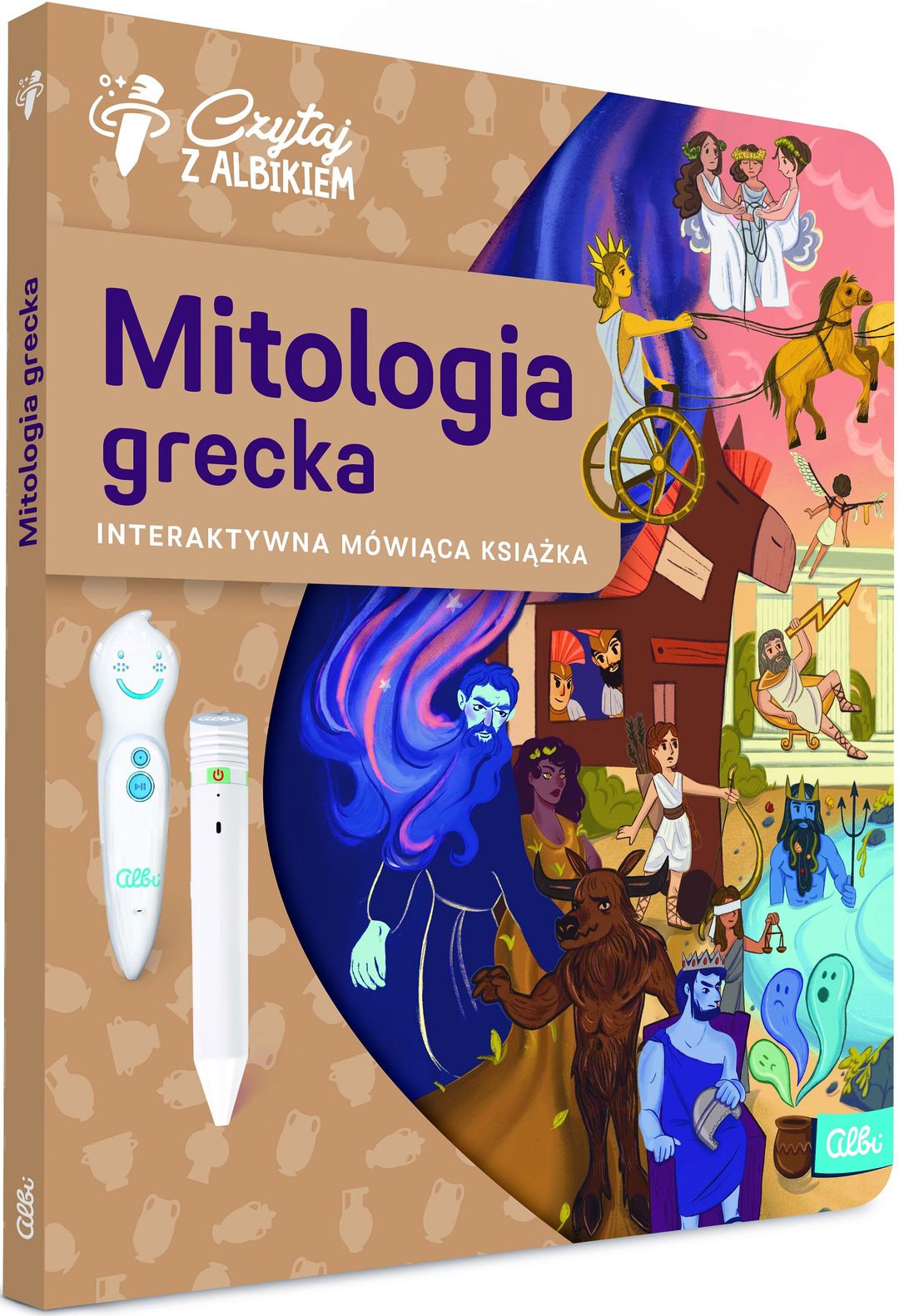 Odkryj niezwykły świat mitów greckich. W jaki sposób starożytni Grecy tłumaczyli zmienność pór roku? Skąd ludzie mieli ogień i dzięki komu nauczyli się walczyć? Kto tkał nić życia człowieka i decydował o jej przerwaniu? Dlaczego wybuchła wojna trojańska i jakie przygody spotkały Odyseusza, kiedy próbował wrócić do domu? Wraz z Albikiem przenieś się do starożytnego świata i odkrywaj mity i ciekawostki opowiedziane na podstawie historii znanych z książki Jana Parandowskiego.