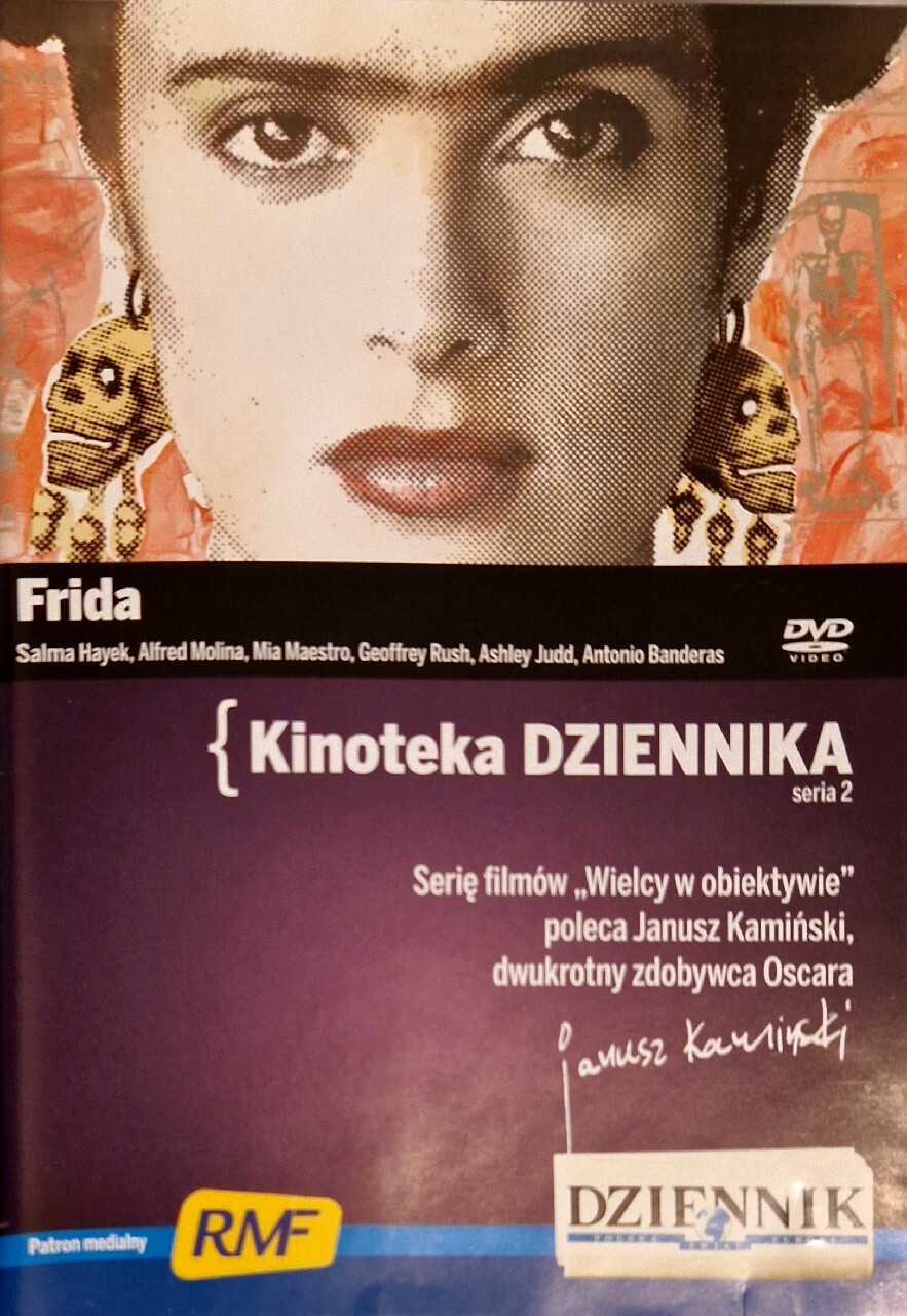 Film na płycie DVD. Opowieść o burzliwym romansie głośnej malarki Fridy Kahlo z jej mentorem i mężem Diego Riverą. Fascynacja Fridą Kahlo rosła w miarę jak odkrywano jej złożoną osobowość. Jej walka, cierpienie, wiara, miłość, burzliwy związek z Riverą, rewolucyjne poglądy i niezwykły styl malarstwa, stworzyły podstawę prawdziwej legendy. Swoją bohaterką ogłosił ją amerykański ruch feministyczny. Nawet świat mody nie oparł się tej fasynacji lansując modę na "piękną, aztecką dziewczynę".