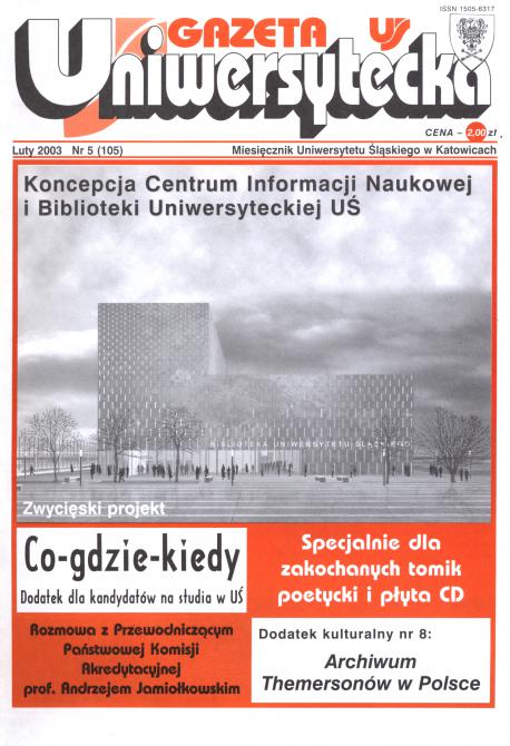 Gazeta Uniwersytecka : miesięcznik Uniwersytetu Śląskiego w Katowicach. Archiwum Czesława Miłosza. - Katowice : , 1992-. - 30 cm.